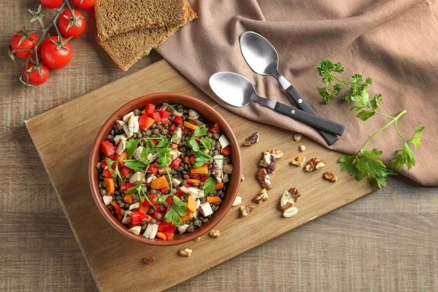 - Haşladığınız mercimeği soğumaya bırakın, soğuduktan sonra diğer malzemelerle aynı kapta birleştirin.