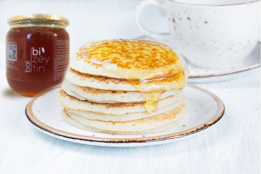 Kahvaltıların vazgeçilmezi, pofuduk ve lezzetli görüntüsü ile gönüllerde taht kuran Bi’Zeytin Bizim Ballı Pancake tarifi ile karşınızdayız. Malzemeler Yapılışı