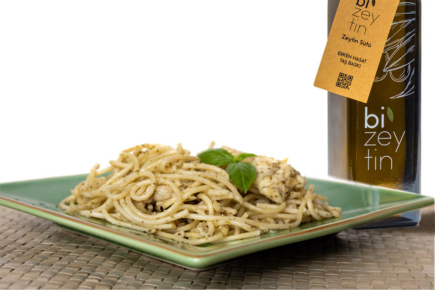 Pesto Soslu Zeytinyağlı Makarna Tarifi - Natürel Sızma Zeytinyağı Hikayesi - Bi'Zeytin