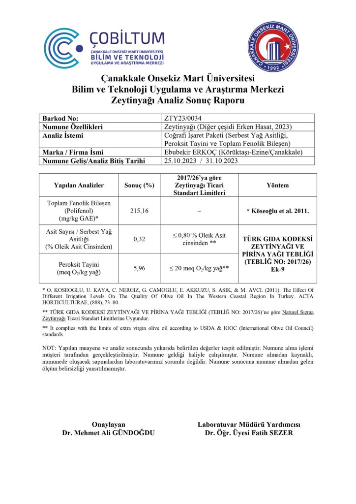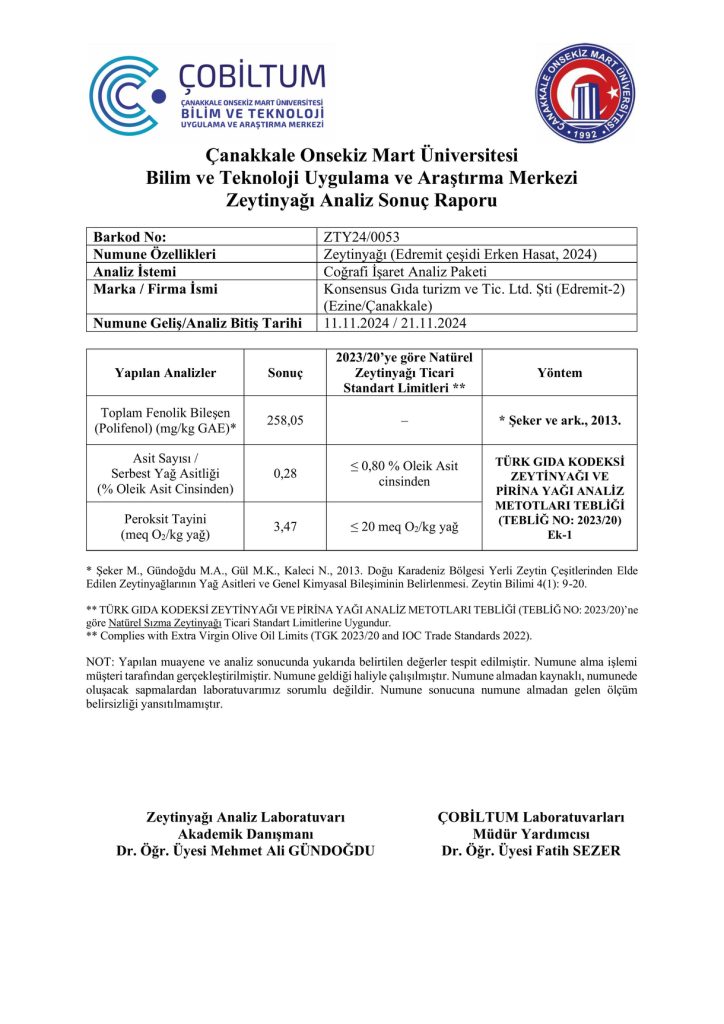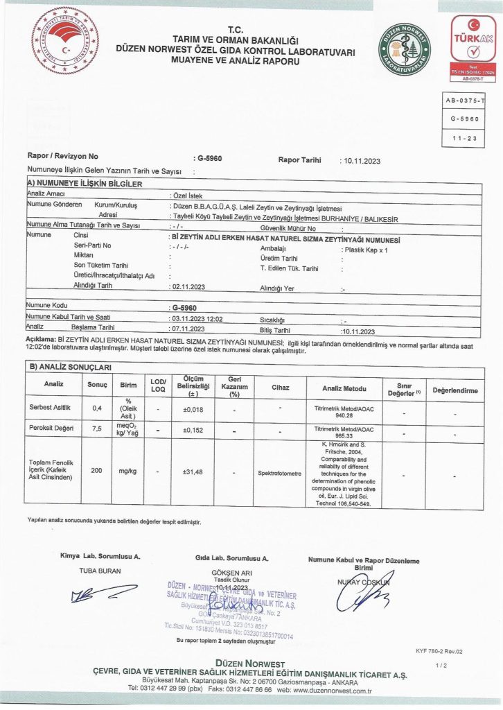 Sertifikalar - Natürel Sızma Zeytinyağı Hikayesi - Bi'Zeytin